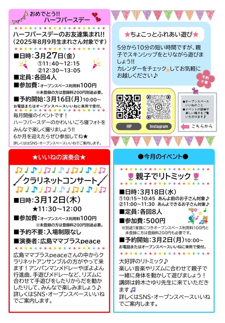 3月カレンダーのご案内。