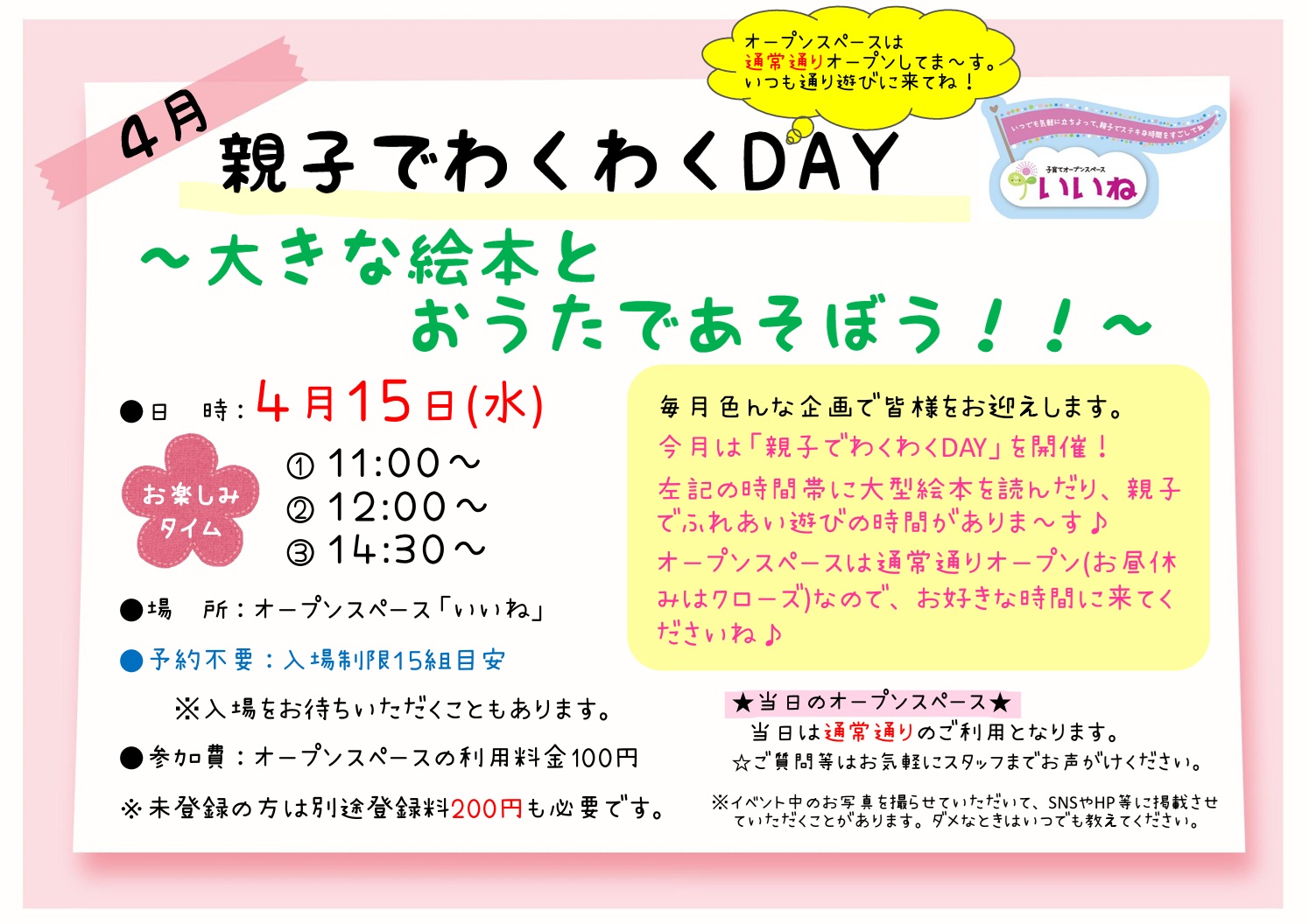 お手数をおかけしますが、新年度の登録料200円と登録用紙のご記入にご協力お願いいたします。